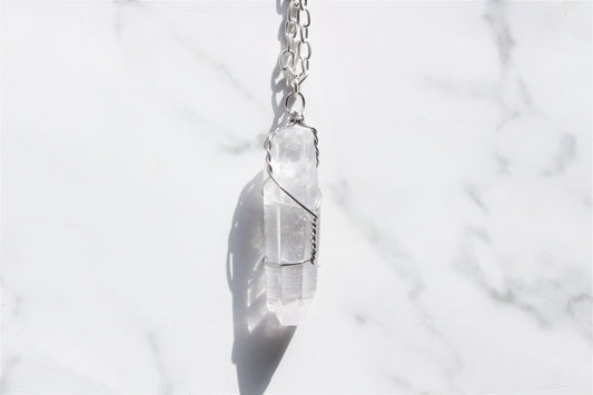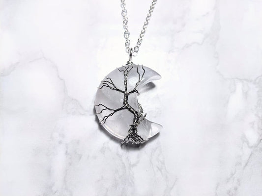 Clear Quartz / Black Obsidian Wire Wrapped Moon Necklace