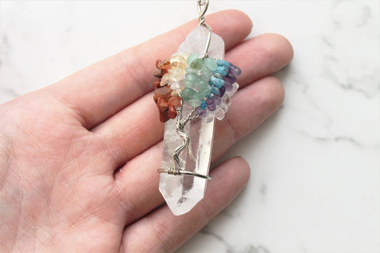 Clear Quartz Wire Wrap Rainbow Crystal Chip Tree Necklace