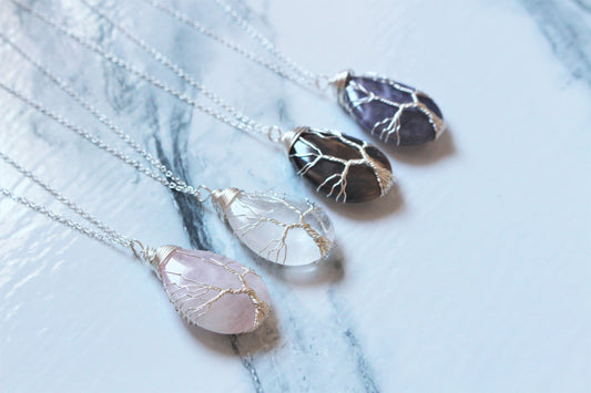 Clear Quartz/ Rose Quartz / Tigers Eye / Amethyst Teardrop Crystal Wire Necklace