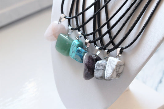 Tumbled Crystal Necklace Black Cord OR Silver Necklace