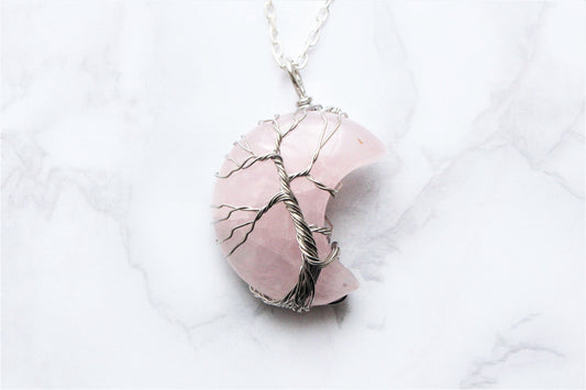 Rose Quartz / Amethyst Wire Wrapped Moon Crystal Necklace