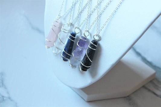 Crystal Pendant Necklace Wire Wrap Necklace Silver Non Tarnish Crystal Rock Gift For Her Him Wife Girlfriend Clear Pink Amethyst Lava UK