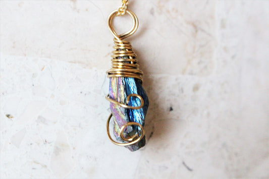 Clear Quartz Wire Wrap Rainbow Crystal Chip Tree Necklace