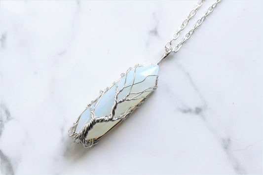 Opal / Rose Quartz Wire Wrap Tree Pendant Necklace